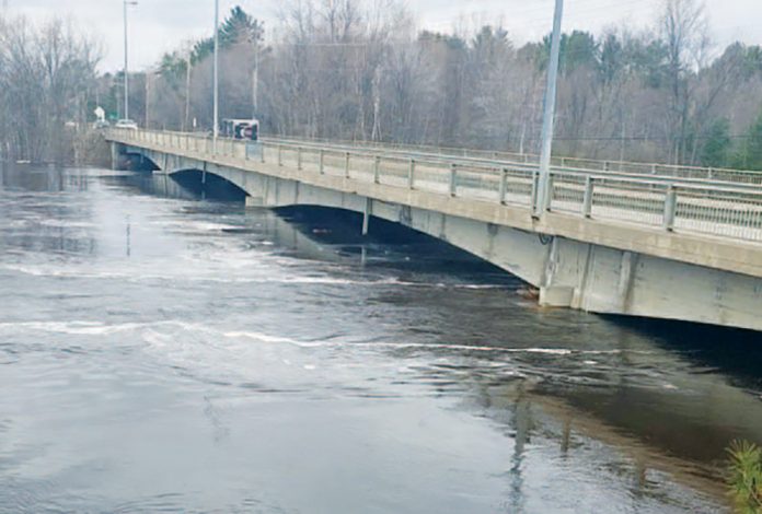 Photo:L’eau en crue sous le pont Blanc à Mansfield. (GF)