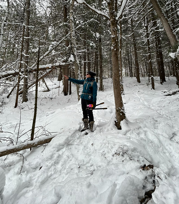 Photo – La bénévole de Ski Pontiac, Anne Freemark, travaille à débroussailler, couper et baliser le nouveau sentier de raquette et de ski nordique hors piste, au sud de Bristol Auto Performance. (DP)