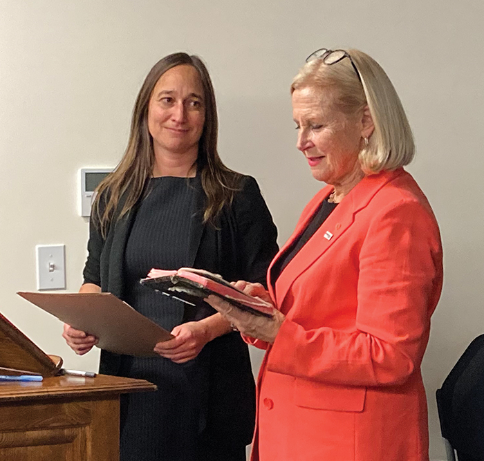 LITCHFIELD – Le jeudi 13 novembre, dans la salle Elsie Gibbons du siège de la MRC, Jane Toller a pris sa Bible d’enfance et a lu Proverbes 3:1–6 avant d’être assermentée pour un troisième mandat à la préfecture de la MRC Pontiac. « Ces versets me guident depuis qu’on m’a remis cette Bible à l’âge de 11 ans », a-t-elle déclaré.